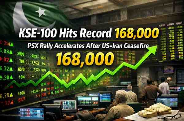 KSE-100 Hits Record 168,000 as PSX Rally Accelerates After US–Iran Ceasefire